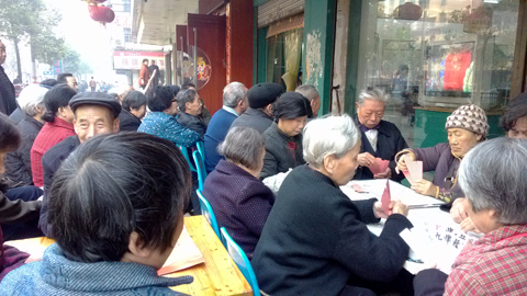 在古汉大道的原秦湘律师事务所旁的双舟大药房门口,经常会看见许多上了年纪的老人家相聚在一起,观看着药店电视里播出的戏曲节目,其乐融融。