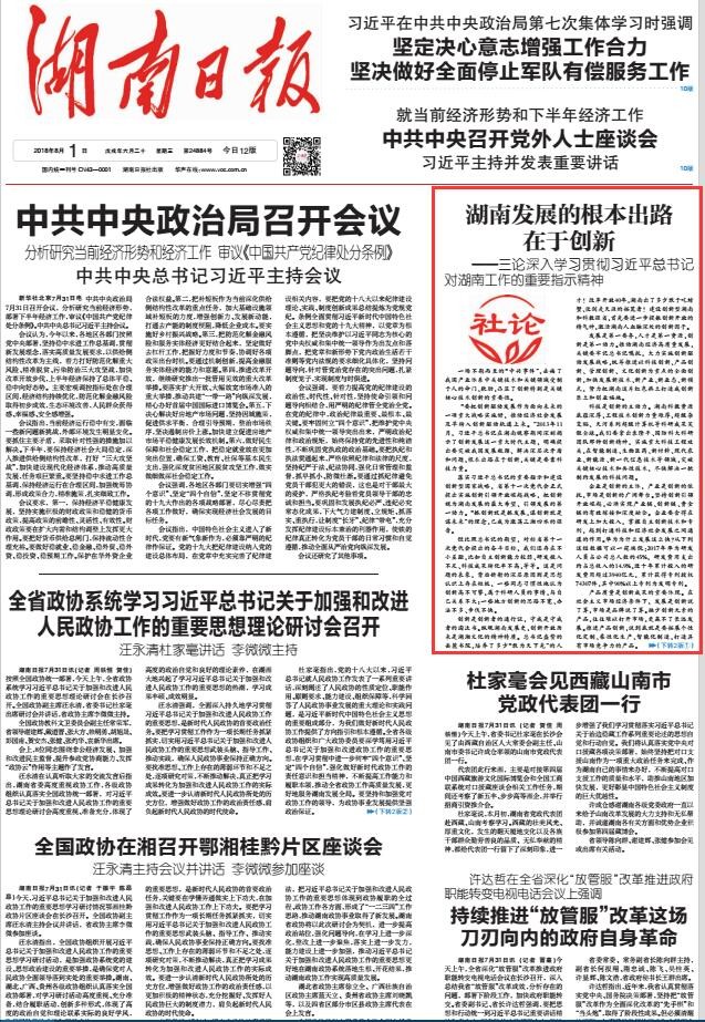 湖南发展的根本出路在于创新。继承敢为人先的湖湘文化传统,敢于直面席卷全球的科技革命、产业革命,在创新发展的征程上干出业绩,是我们这一代湖南人的应有姿态、应有作为。