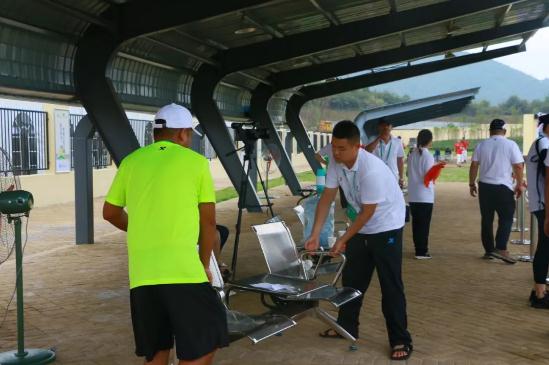 靶场上运动员射击英姿飒飒,靶场下志愿者们上靶任劳任怨。