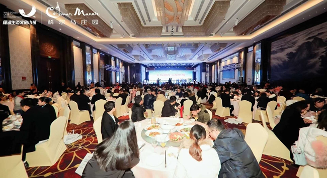 本网讯(记者 陆元连) 1月2日下午,汇景集团衡阳科尔马庄园3期/4期别墅产品发布会在丽波国际酒店一楼国际宴会厅盛大举行。这既是一场震撼雁城、改变衡阳文旅格局、提升人居品质生活的盛会,也是汇景衡阳城市公司举行的一场高朋满座、觥筹交错的雁湖生态文旅小镇客户答谢晚宴。